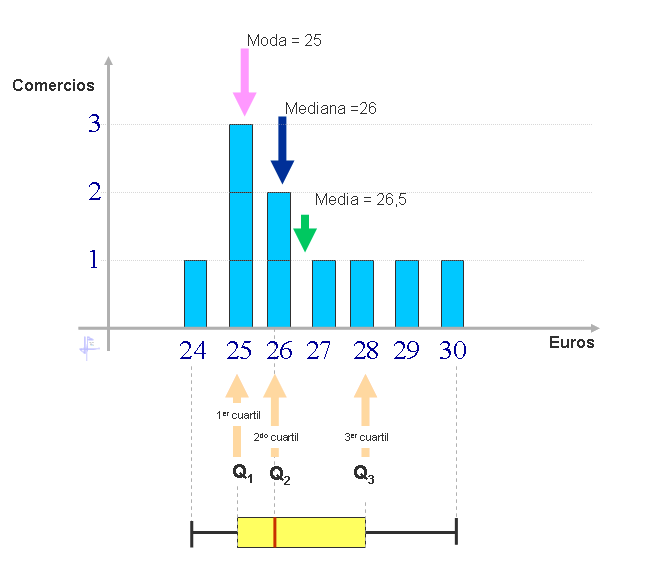 - Ejemplo 3: En la asignatura de matemáticas, las calificaciones de los alumnos se dio de la siguiente manera: 80, 65, 70, 70, 92, 80, 96, 100, 70, 80, 92, 92. En esta circunstancia las notas de 70, 80 y 92 son las que se repiten más y con igual numero de veces “3”. Tomando estos valores en cuenta tenemos una medida multimodal.