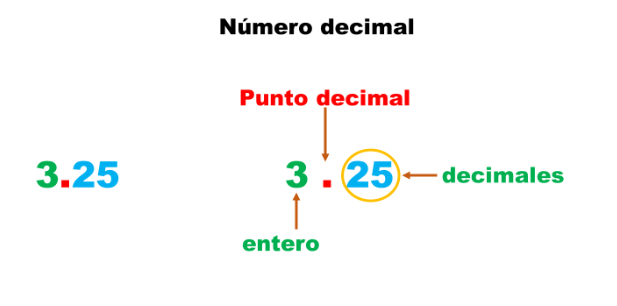 Los números decimales se dividen en tres partes principales las cuales son: