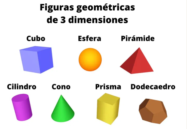- Tridimensional: Comúnmente se le conoce como cuerpos sólidos, sus figuras se encuentran en tercera (3) dimensión. En esta categoría podemos encontrar al cubo, esferas, poliedro o cilindro, los cuales poseen anchura, altura y longitud.